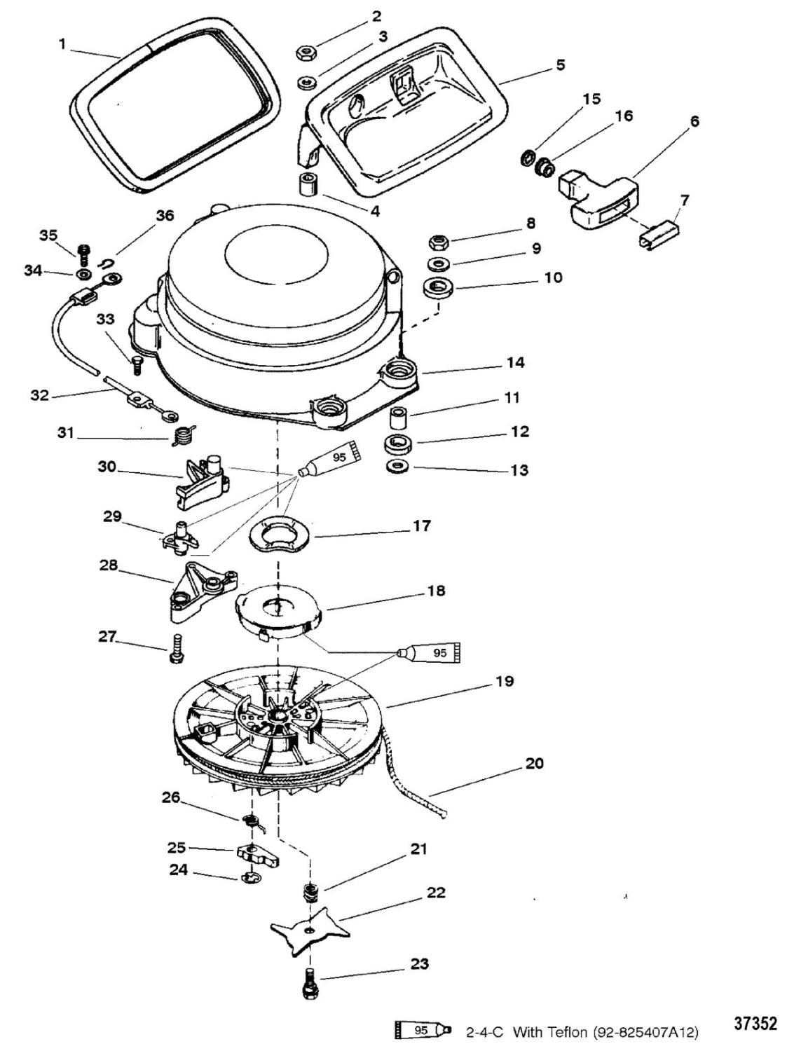 Startklack, ratchet, manuell startapparat Mercury flera modeller 2-takt och 4-takt, äldre (ej Tohatsu)