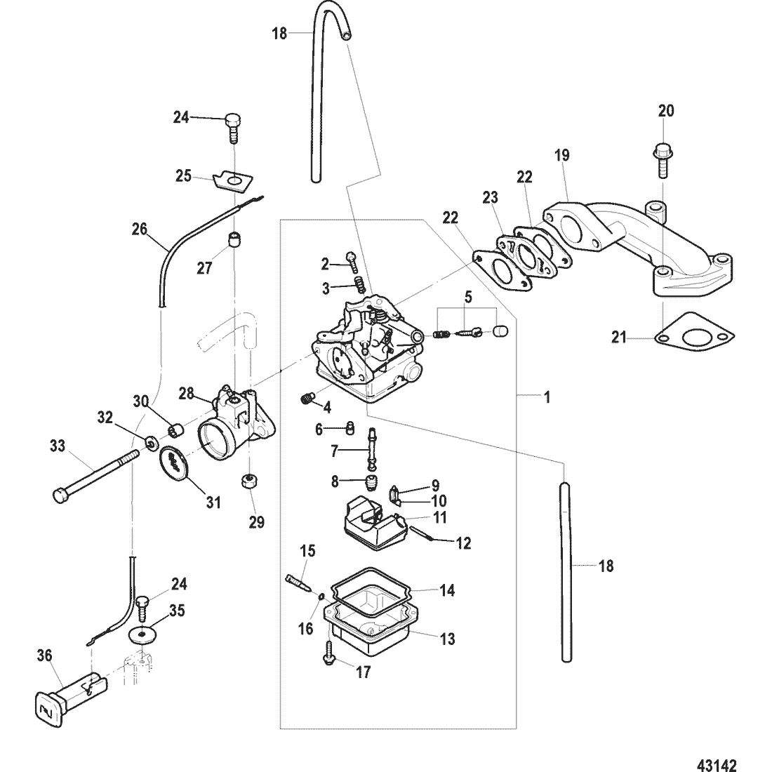 Stigarrör förgasare Mercury F 3,5 hk 85,5 cc Tohatsumodell från nr 0R318096 och nyare, samt vissa F 6, 4-takt 123 cc