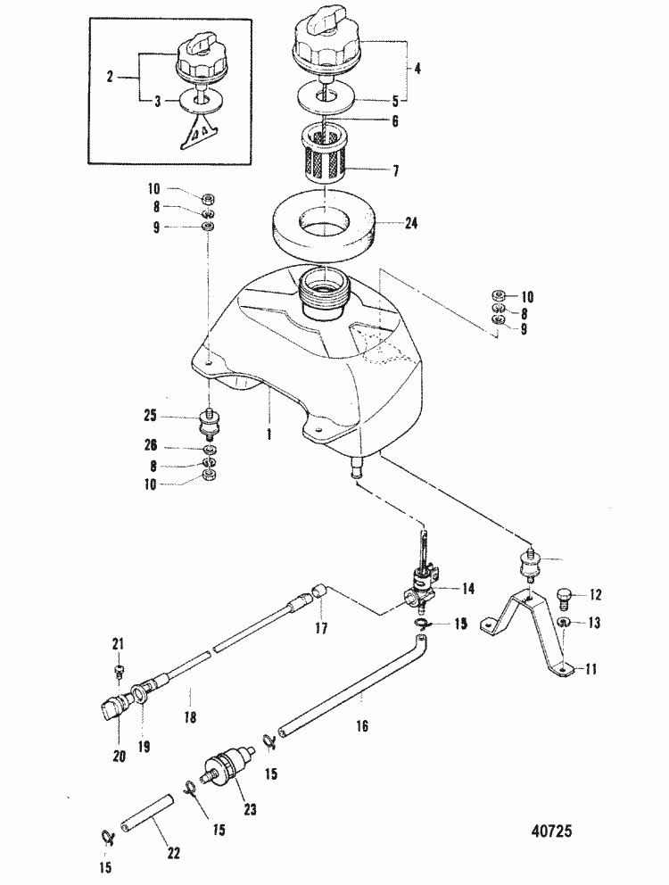 Stöd för inbyggd bränsletank Tohatsu M 4 C - M 5 B, 2-takt