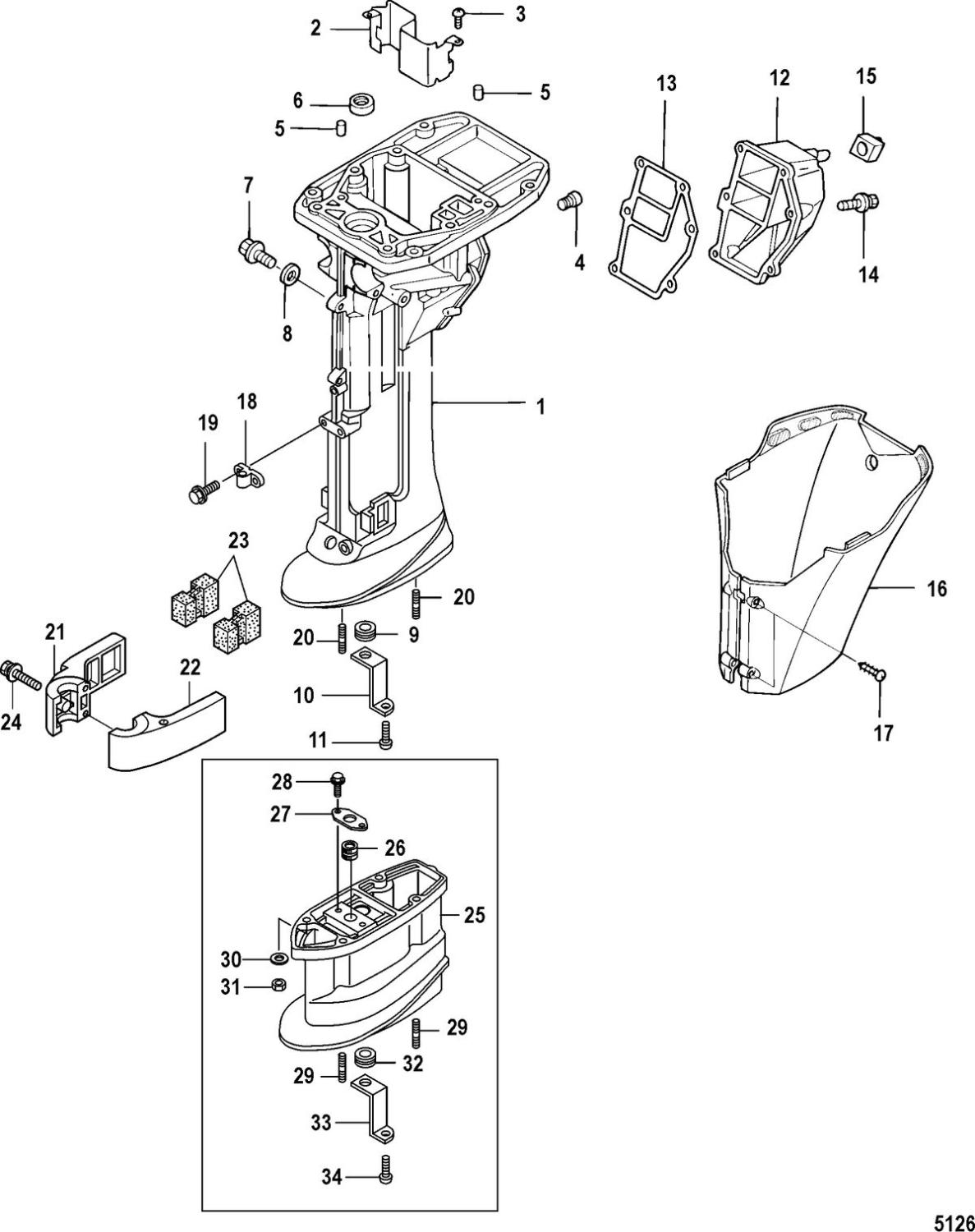 Stopper, plåt, Mercury 2,5 - 3,3 hk, 74,5 cc 2-takt samt F 8 - F 9,9 hk, 209 cc, F 10 - F 20 hk, 333 cc och 351 cc