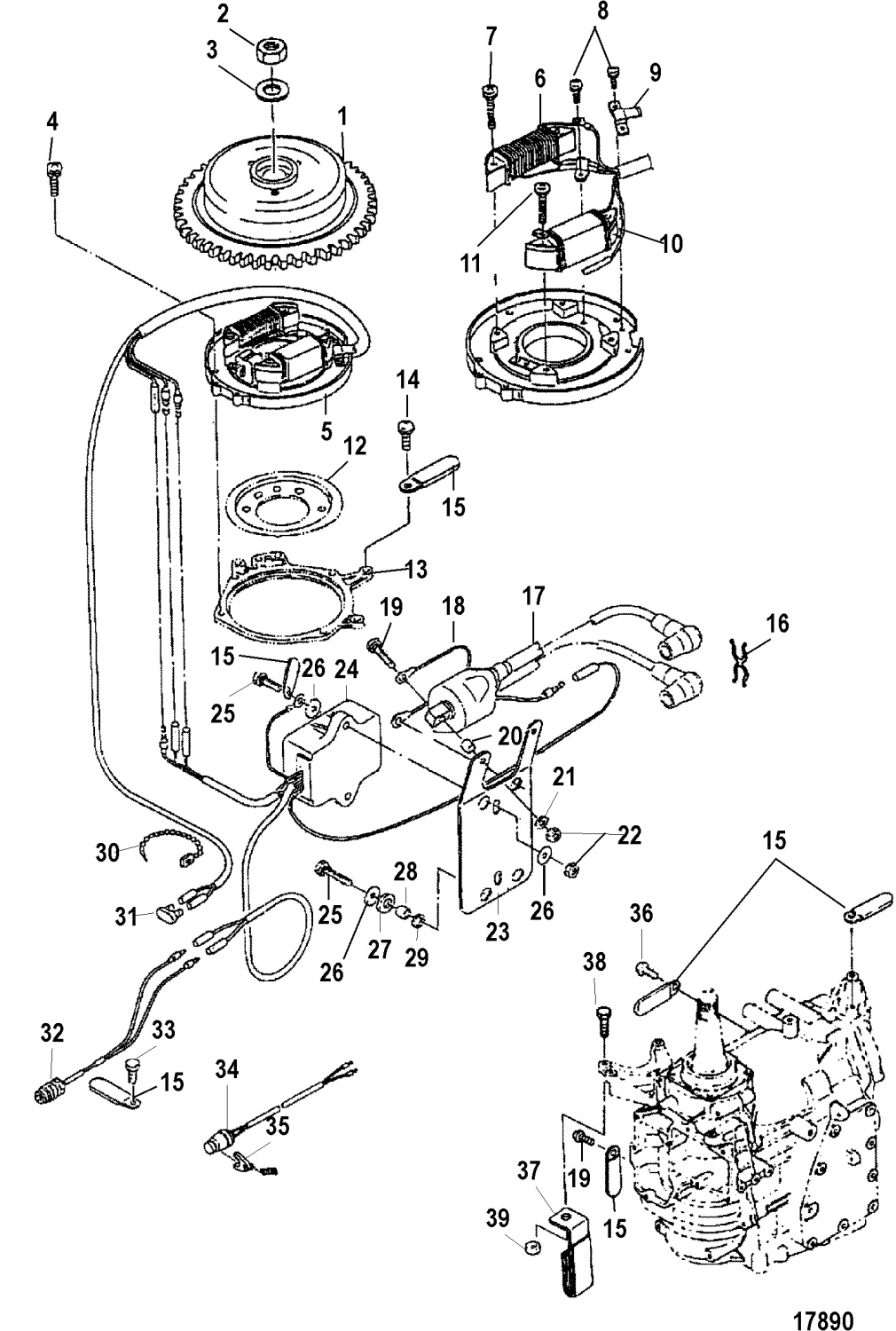 Svänghjulsmutter Mercury 10 -18 hk, 247 cc samt 25 - 30 hk, 430 cc, 2-takt och F 10 - F 20 hk, 4-takt 328 cc, 351 cc samt 333 cc Tohatsumodeller