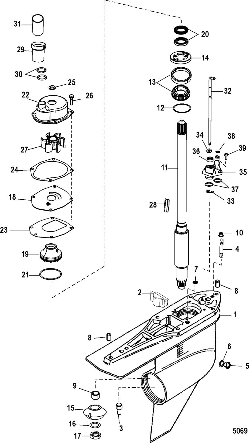 Tätning under impellerhus Mercury F 30 - F 60 hk, 4-takt flera modeller.