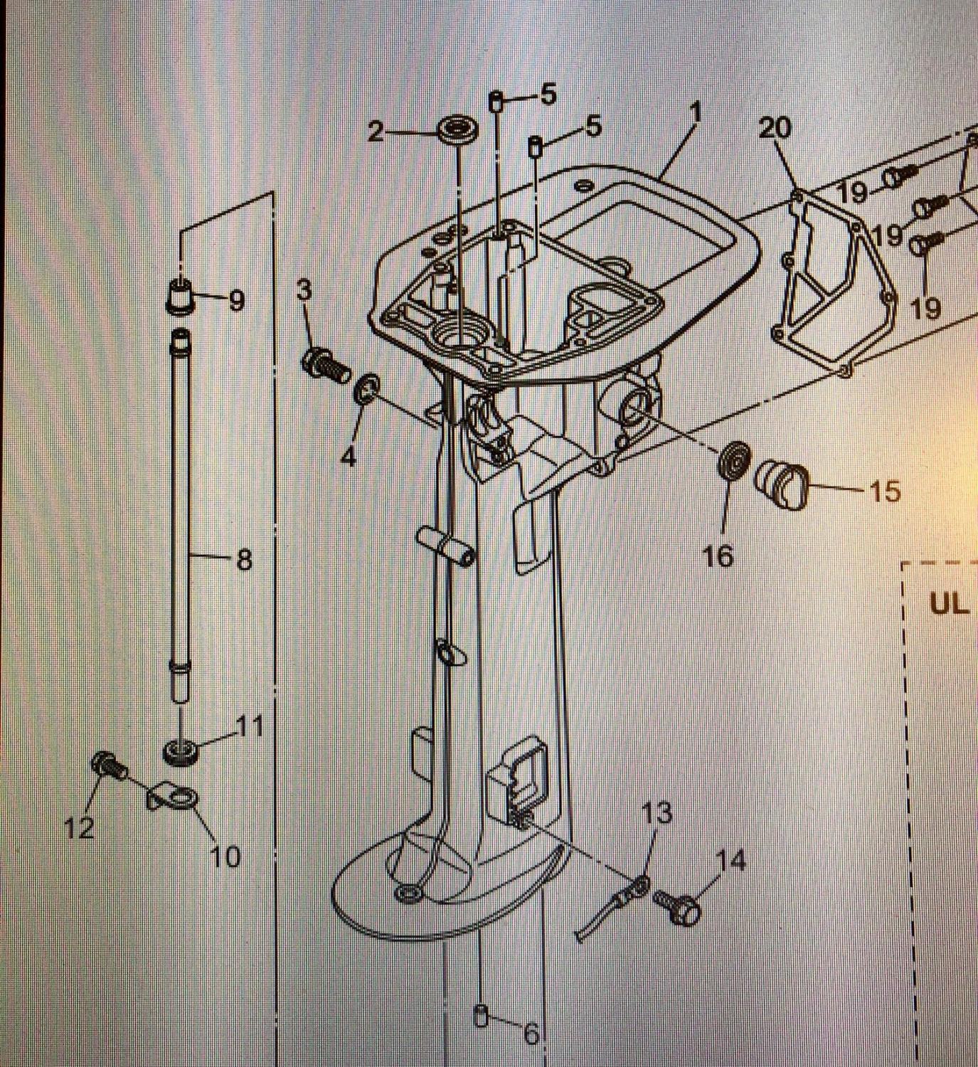 Tätning nedre, kylvattenrör Mercury F 8 - F 9,9 hk, 209 cc samt F 10 - F 20 hk, 333 cc och 351 cc, 4-takt