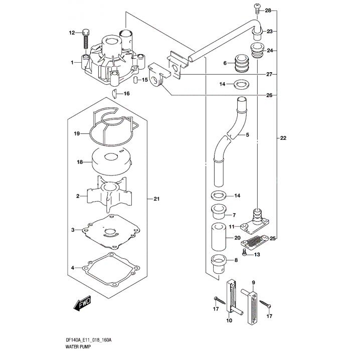 Tätning kylvattenrör Suzuki DF 70 A - DF 140 hk, 4-takt flera modeller