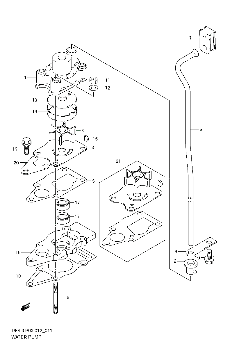 Tätning vattenrör impellerhus Suzuki DF 4 - DF 6 hk, 4-takt