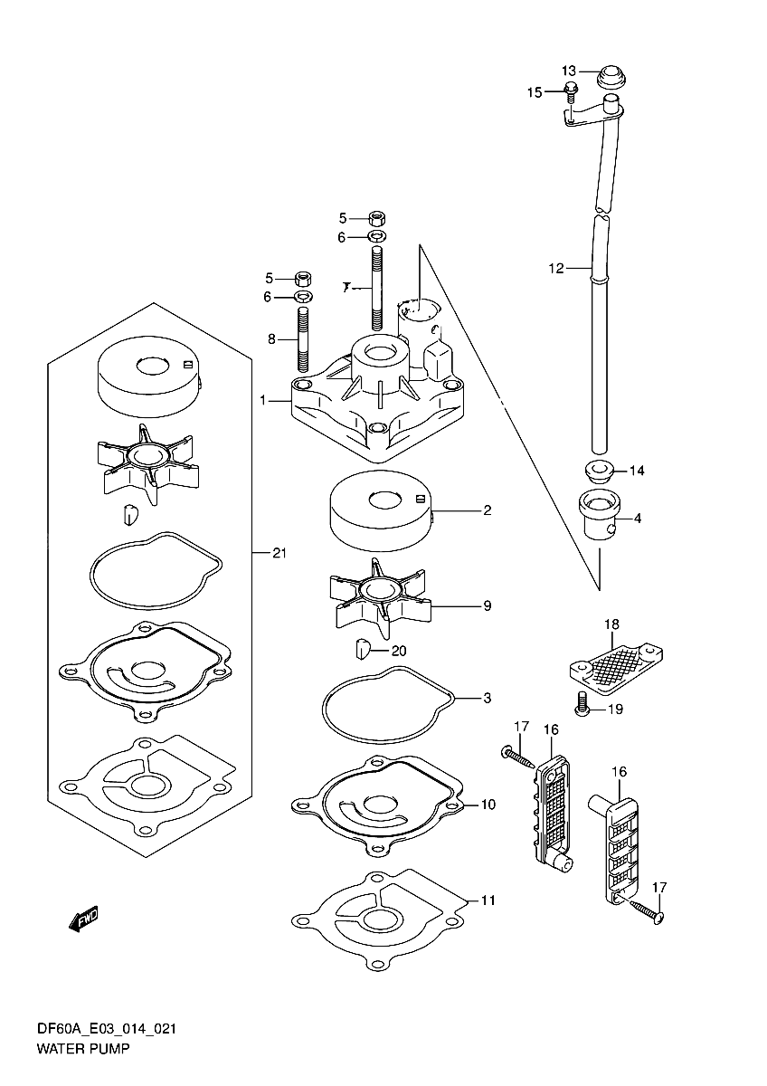 Inre tätning vattenrör impellerhus Suzuki DF 40 A - DF 60 A samt DF 70 A - DF 90 A + DF 100 B, vissa modeller.