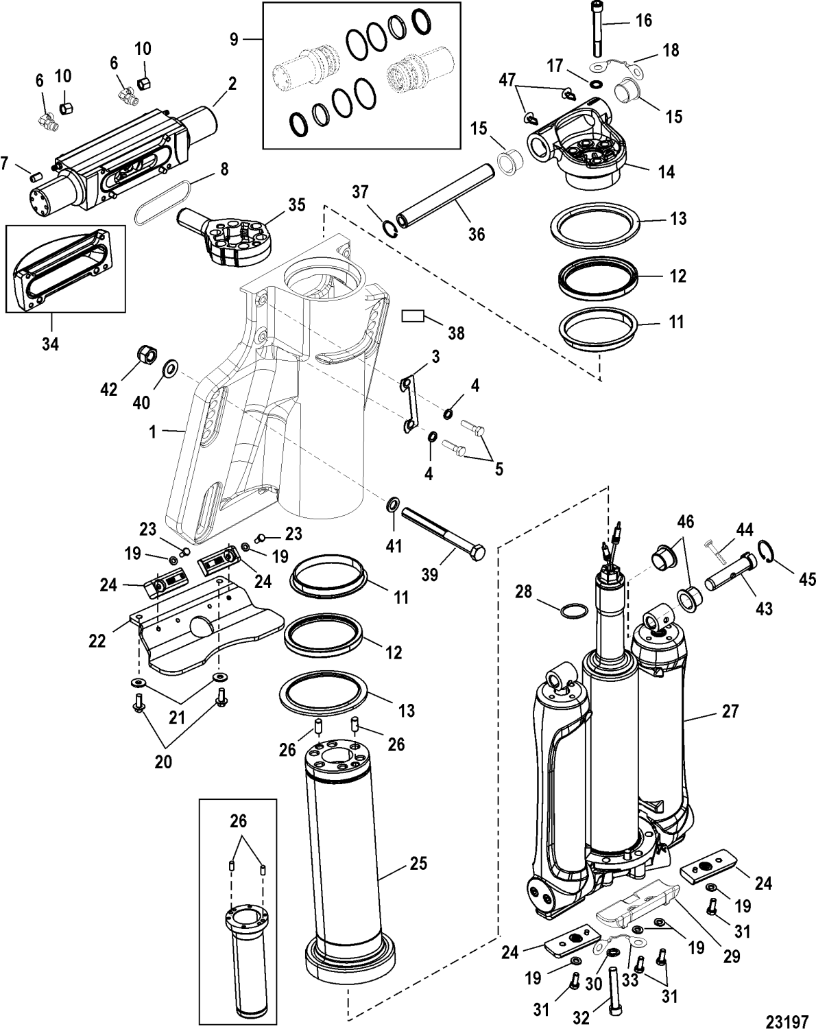 Tätning styrcylinder flera Mercury Verado (L 6, V 6, V 8, V10 samt viss joystickstyrning)