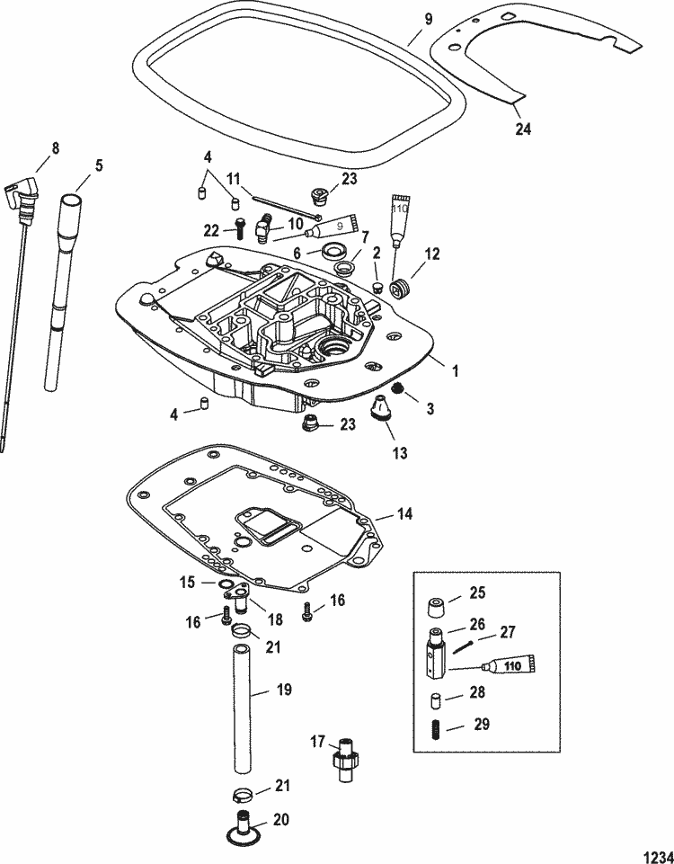 Tätning adaptorplatta Mercury, flera modeller F 25 - F 50 hk, 4-takt (ej Tohatsumod)