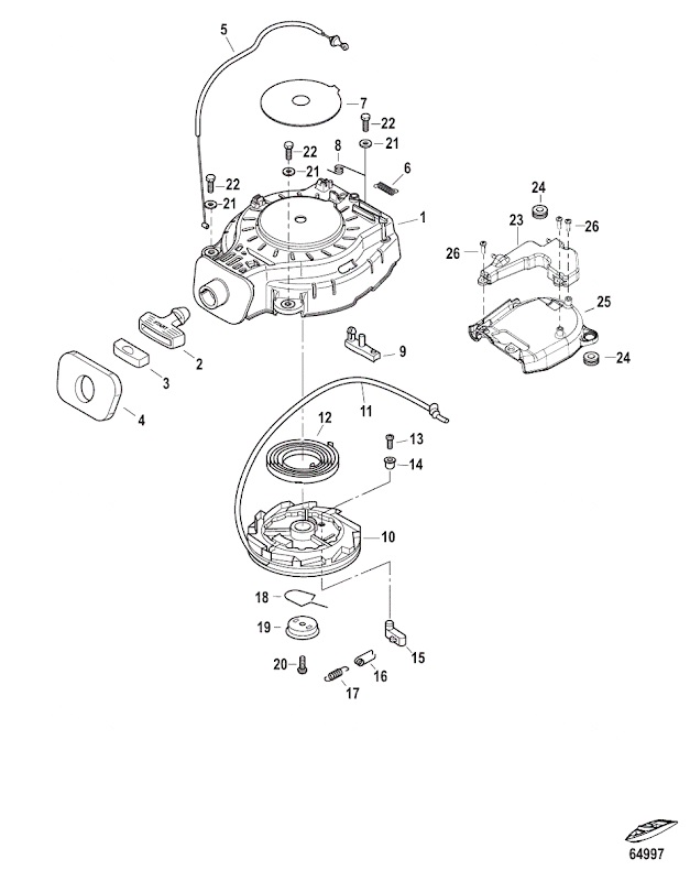 Tätning starthandtag manuell startapparat Mercury F 25 - F 30 hk, 500 cc 4-takt