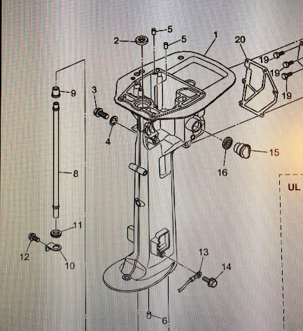 Tätning nedre, kylvattenrör Tohatsu MFS 8 - MFS 9,8 hk 209 cc samt MFS 9,9 - MFS 20,333 cc och 351 cc, 4-takt