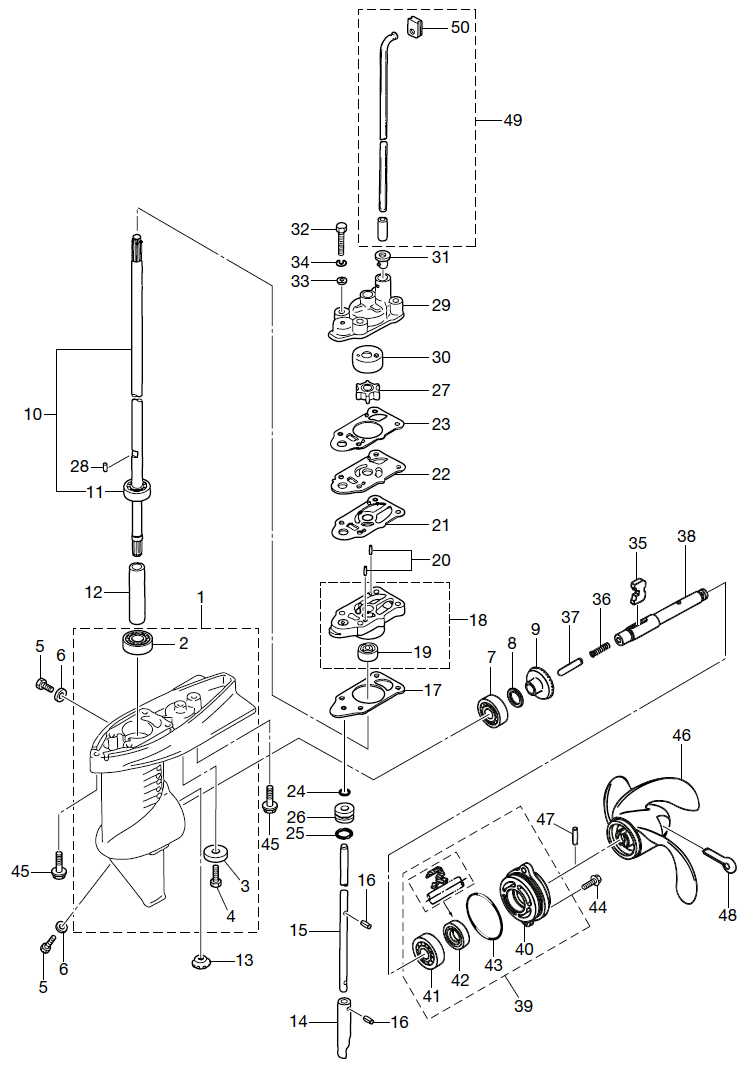 Tätning växelstång Mercury 3,3 hk, 74,5 cc 2-takt samt F 2,5 - F 3,5 hk, 4-takt Tohatsumodeller