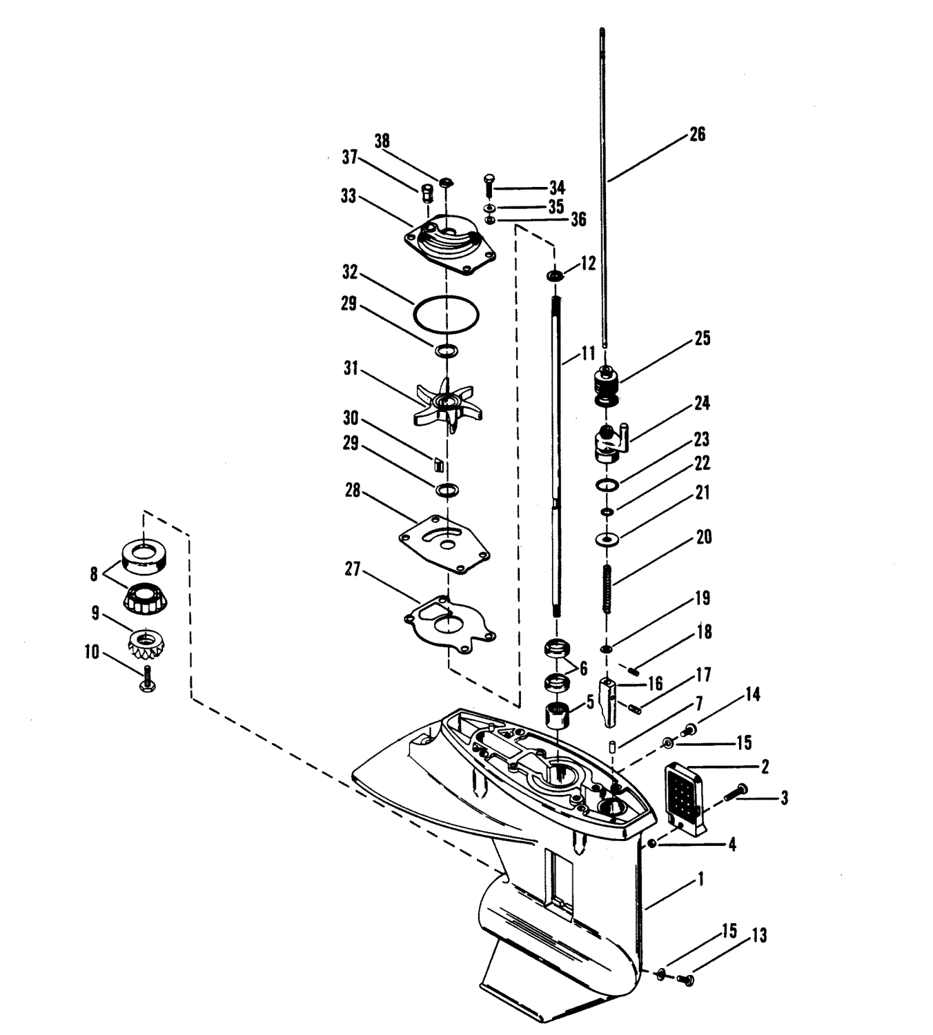 Tätning över och under impeller Mercury 20 - 50 hk, 2-takt flera modeller och F 25 - F 50 hk, 4-takt flera modeller
