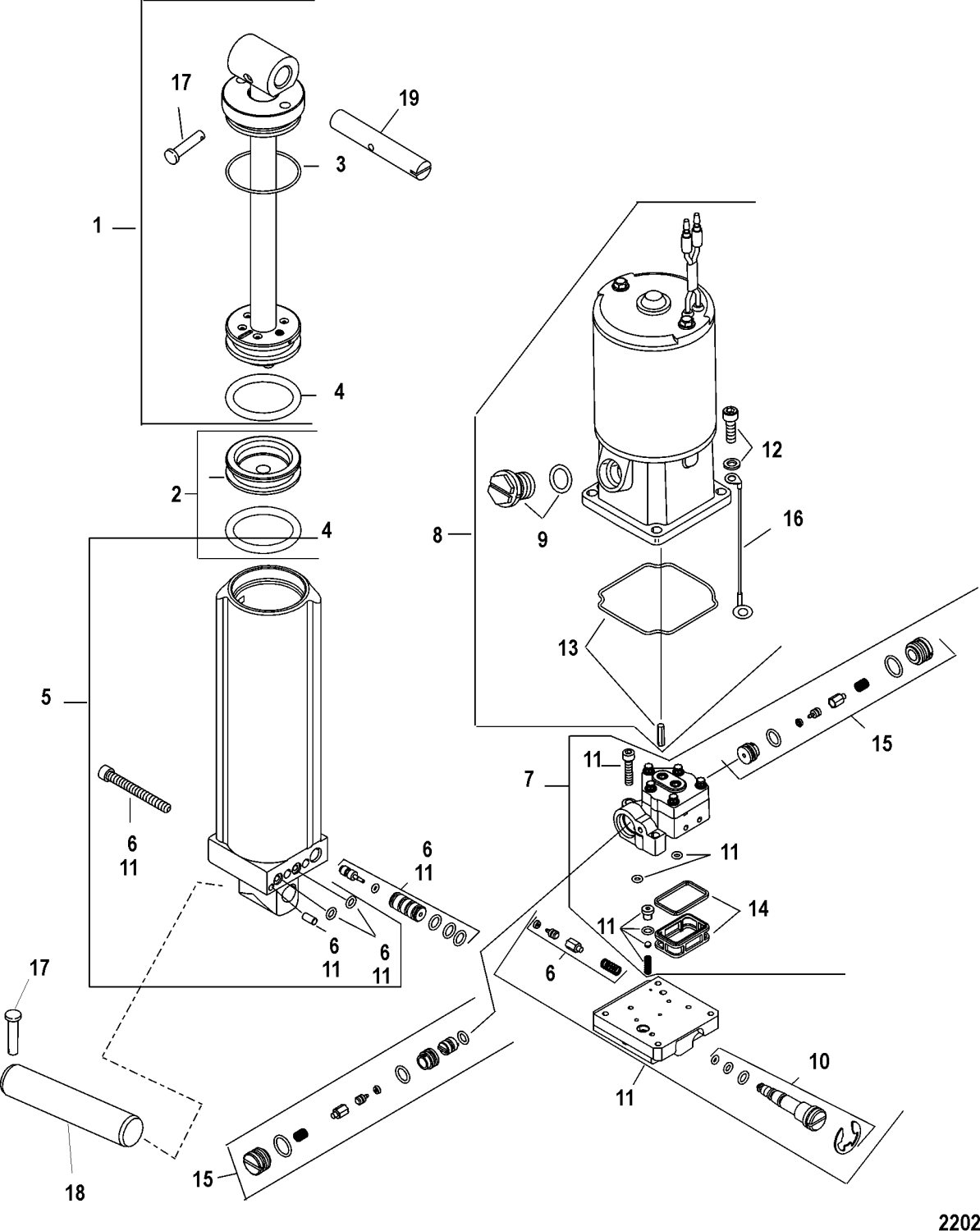 Tätsats trimcylinder Mercury, flera modeller 2-takt och 4-takt
