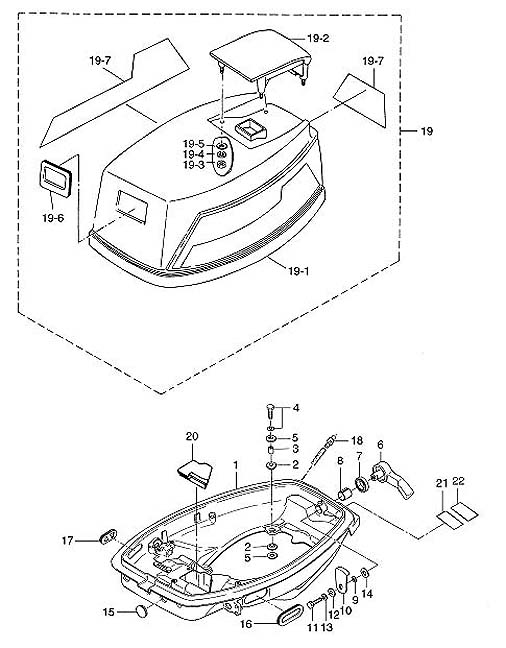 Tiltkåpa motorkåpa Tohatsu M 25 C - M 30 A, 430 cc, 2-takt