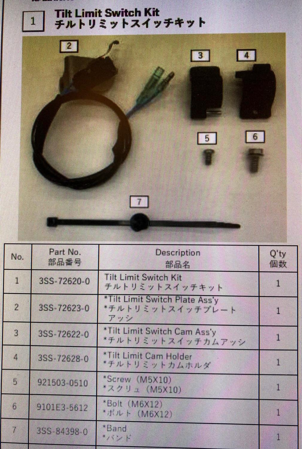 Tilt limit switch kit / sats för trimbegränsning Tohatsu MFS 75 A - MFS 140 A, 4-takt