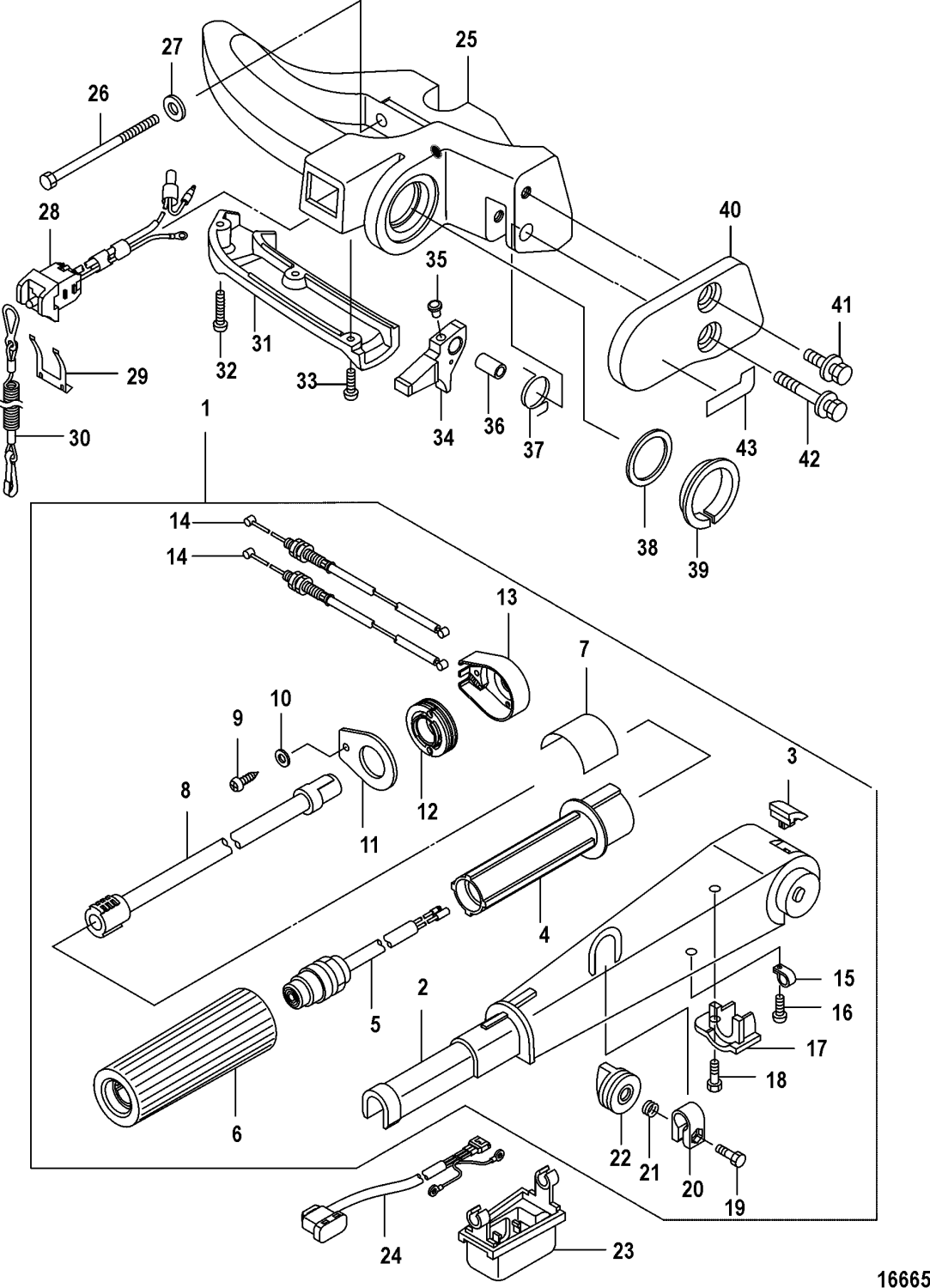 Powertiltknapp Mercury F 25 EFI - F 30 EFI, 4-takt rorkult/tiller Tohatsumodell