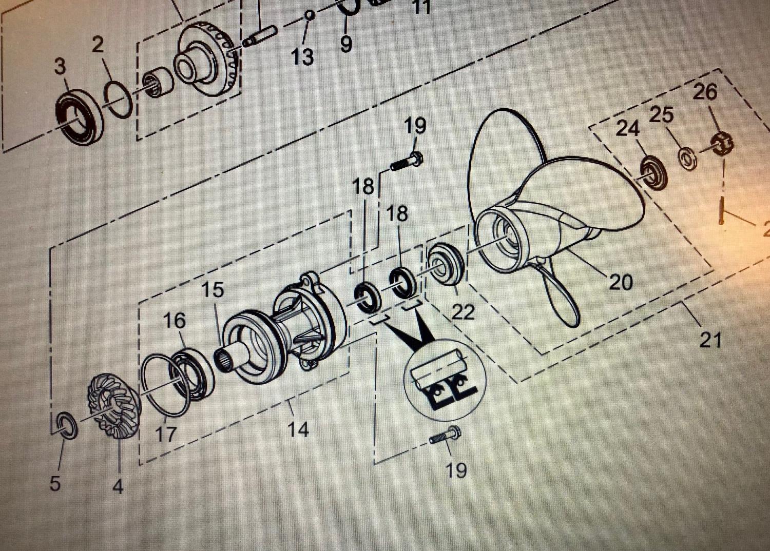 Om originalpropeller ej används, kan det skilja på tryckbrickor-se sprängskisser
