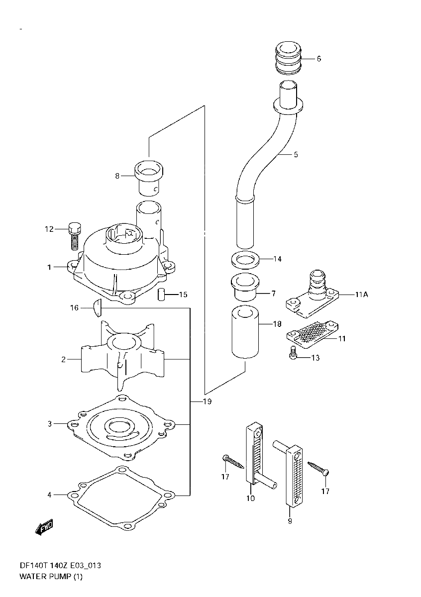 Slangfäste vattenintag i kavitationsplatta Suzuki DF 40 A - DF 140 A + B, 4-takt, flera modeller.