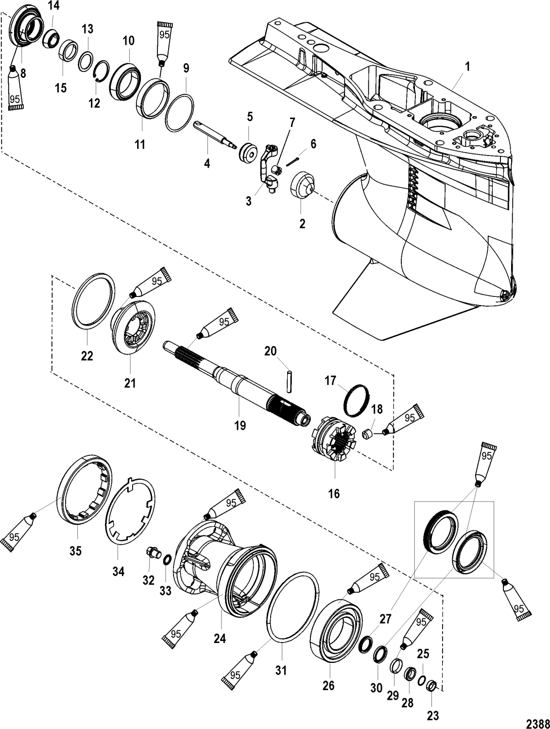 Växelarm växelhus vissa Mercury Verado L 4 och L 6, 4-takt samt DFI V 6, 5/16 pivot pin
