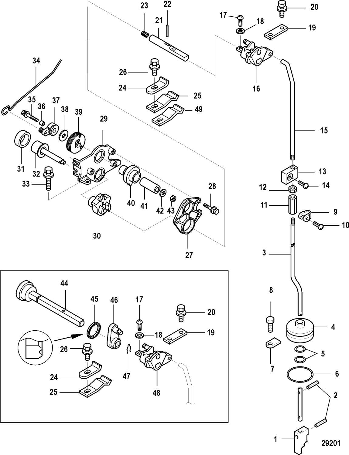 Plastdrev växelenhet flera modeller Mercury F 8 - F 9,9 hk, 209 cc och F 25 - F 30 hk, 526 cc, 4-takt