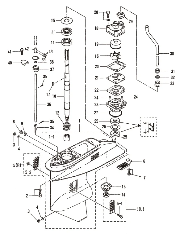 Nedre växelstång Tohatsu M 40 - M 50 hk, 697 cc 2-takt samt MD 40 - MD 50 hk, TLDI
