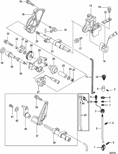 Skarv växelstång F 25 EFI - F 30 EFI, 526 cc 4-takt Tohatsumodell. Design 2 nyare, nr 4 i bild