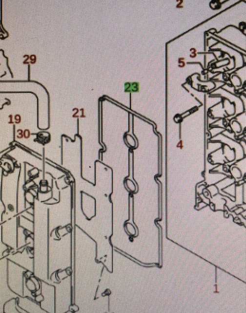 Observera att det är olika packningar Babord och Styrbord sida på motorn.