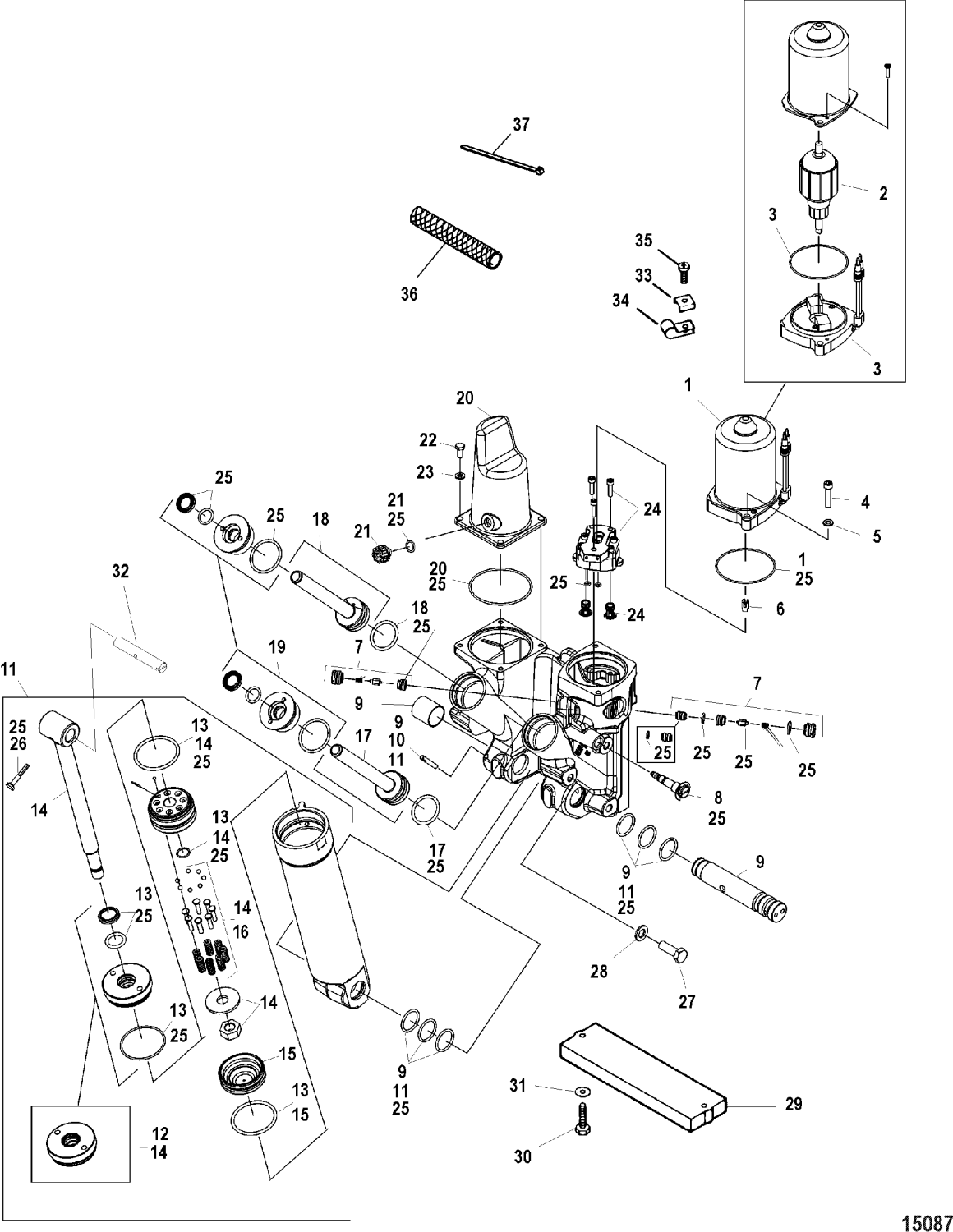 Ventilsats till powertrim Mercury Verado L 4 samt flera V 6, 2-takt och DFI med metallskydd runt elmotor
